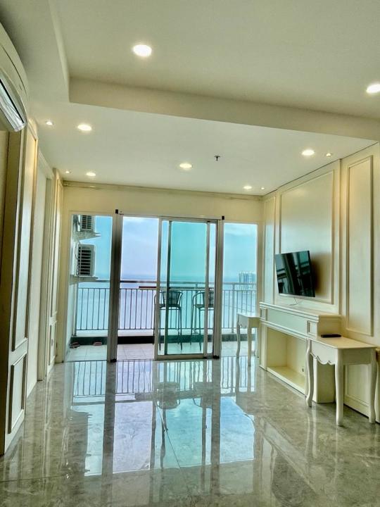 Condo greenbay 3+1 BR lantai tengah furnish rapi mewah view laut