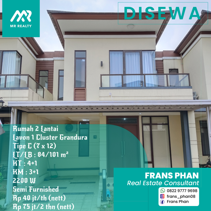 Disewa Rumah 2 lantai di Lavon 1 Cluster Grandura