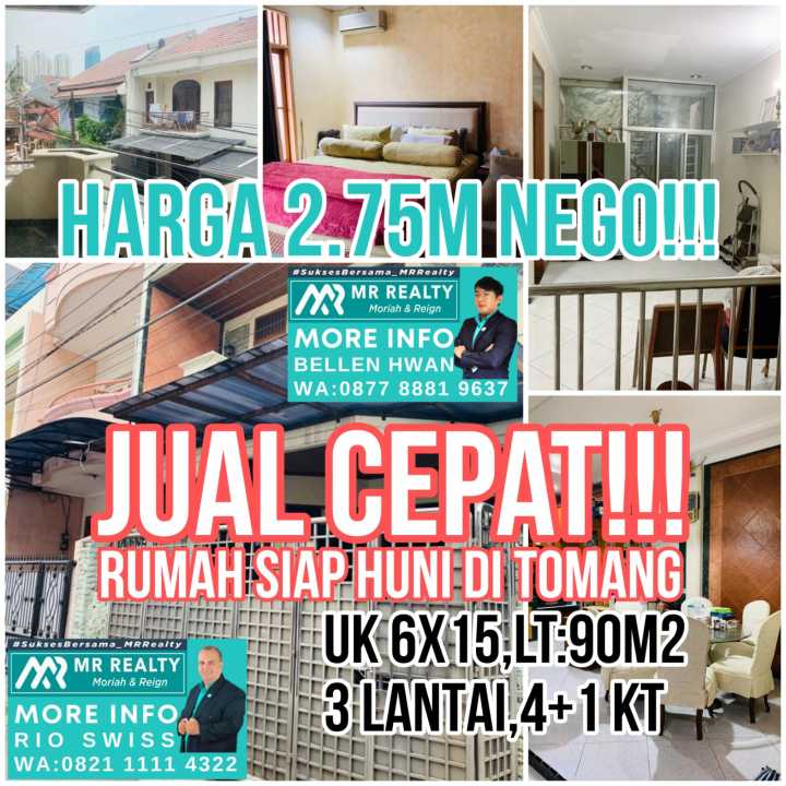 Jual cepat rumah siap huni 3 lantai di tomang