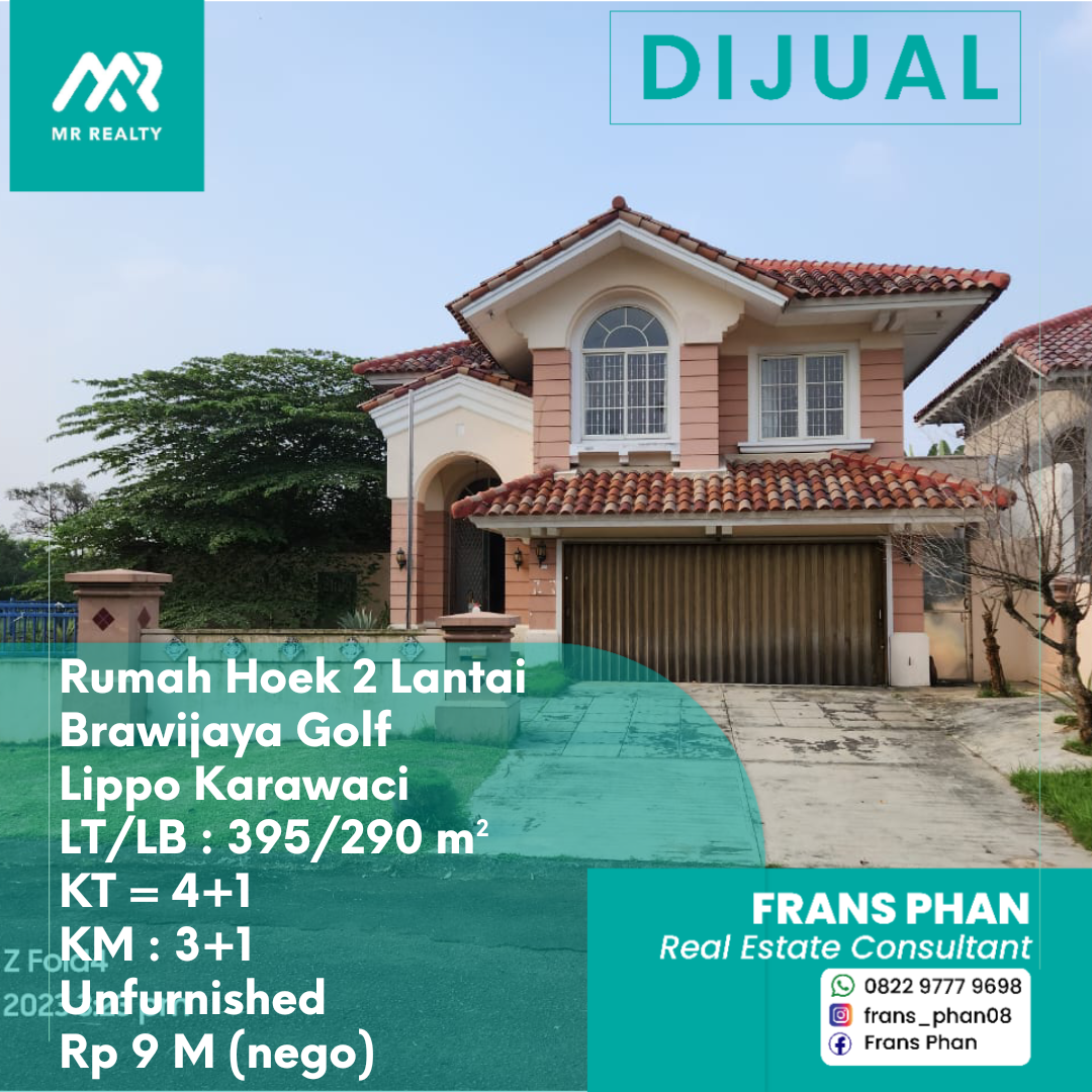 Dijual Rumah Hoek 2 lantai di Brawijaya Golf, Lippo Karawaci