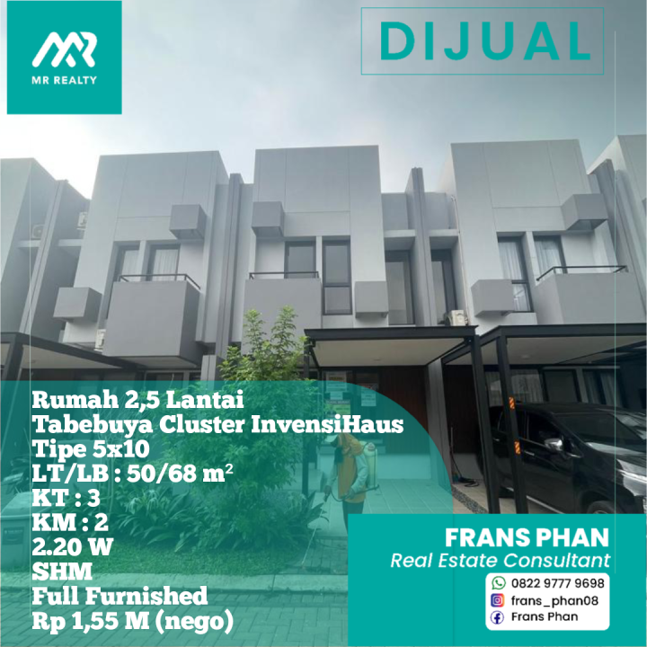 Dijual Rumah 2,5 Lantai di Tabebuya Cluster Invensihaus BSD (5x10)