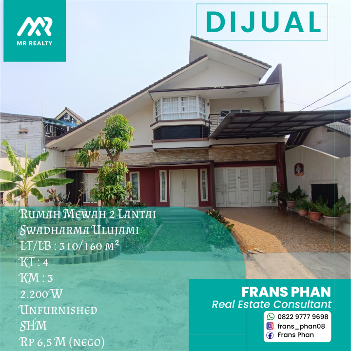 Dijual Rumah Mewah 2 lantai di Swadharma Ulujami
