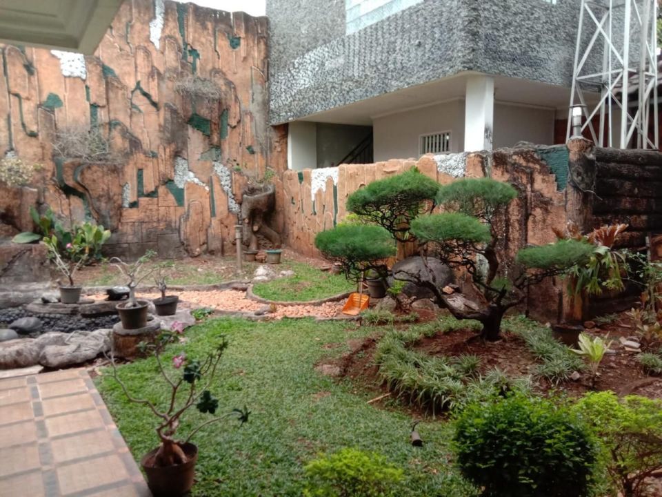 Taman depan dan taman belakang dg kolam ikan koi.