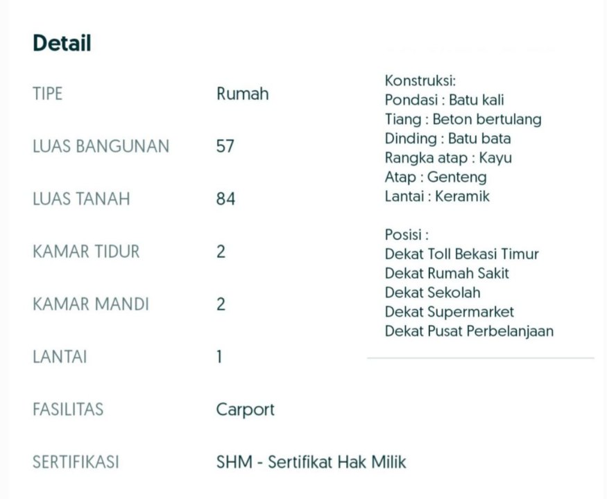 - Luas Tanah : 57M2