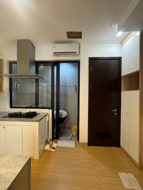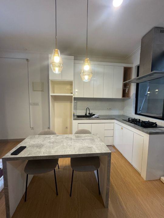 Ada interior ac 3, kitchen set, meja makan, kompor, sink, kasur 2.