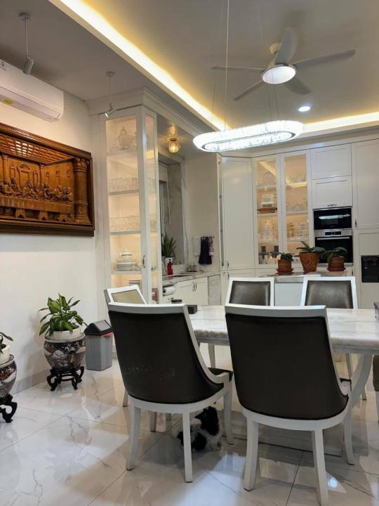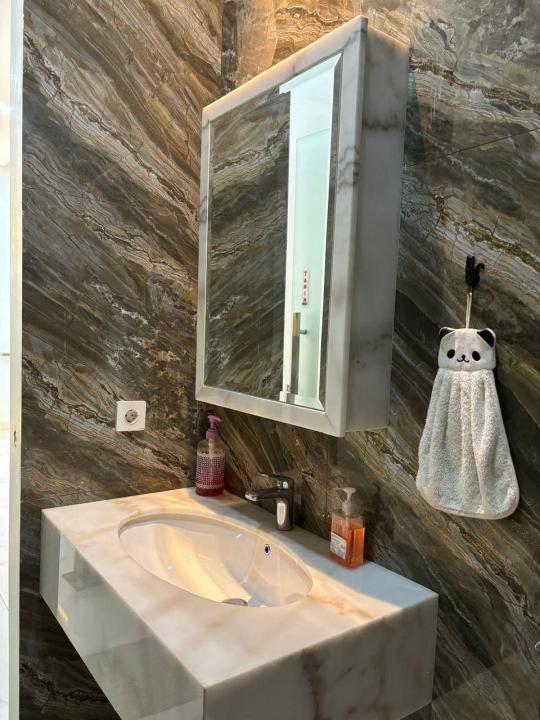 Ruang makan dengan meja marmer
