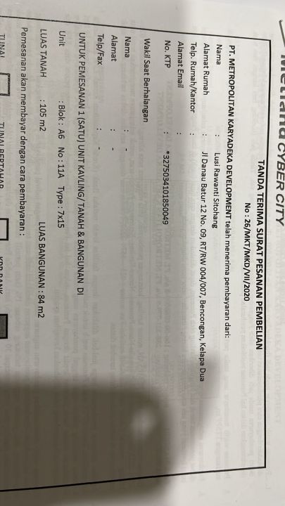 DIJUAL RUMAH 2 LANTAI DI EAST TERRACE PERUMAHAN METLAND CYBER CITY