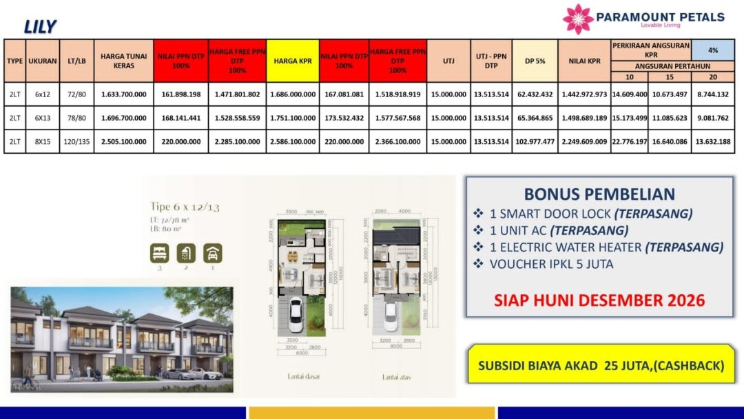 Dijual Baru Perumahan Kawasan Paramount Petals Curug Tangerang