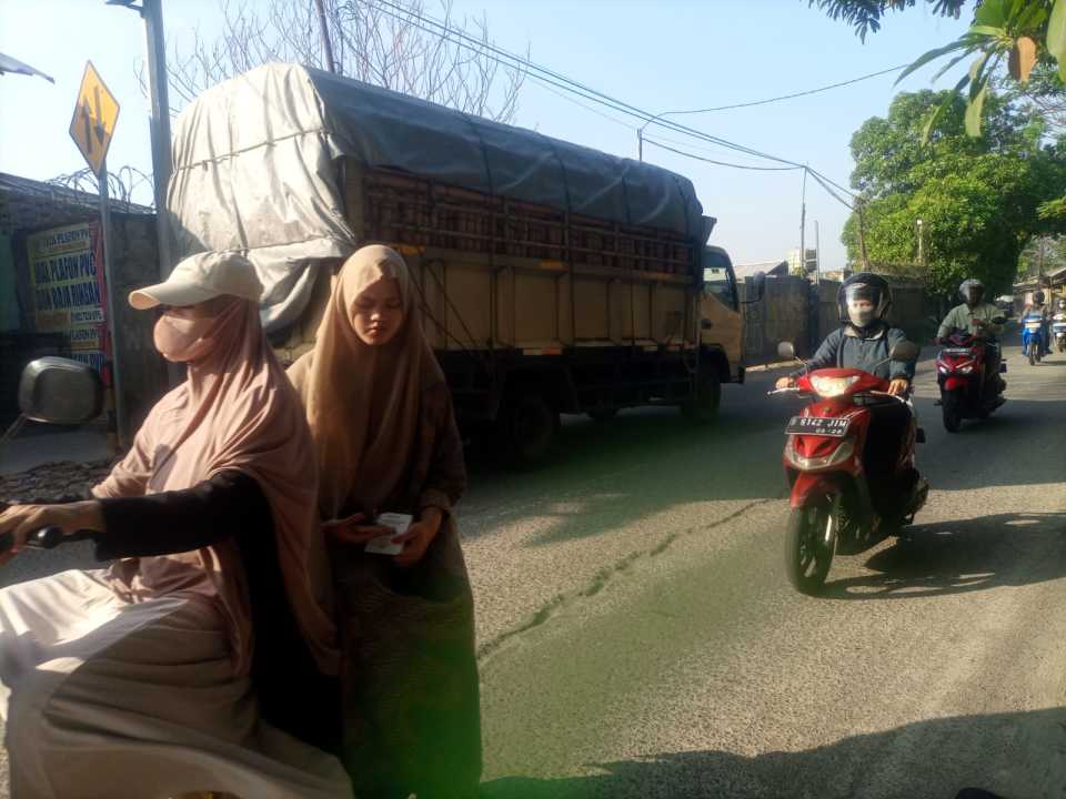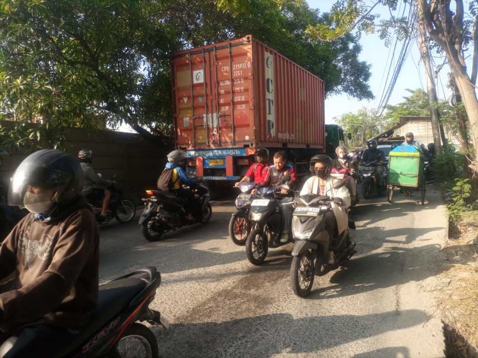 Akses di lalui kontainer 40 feet ke area pergudangan DPR nerogtog Cipondoh