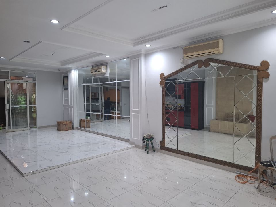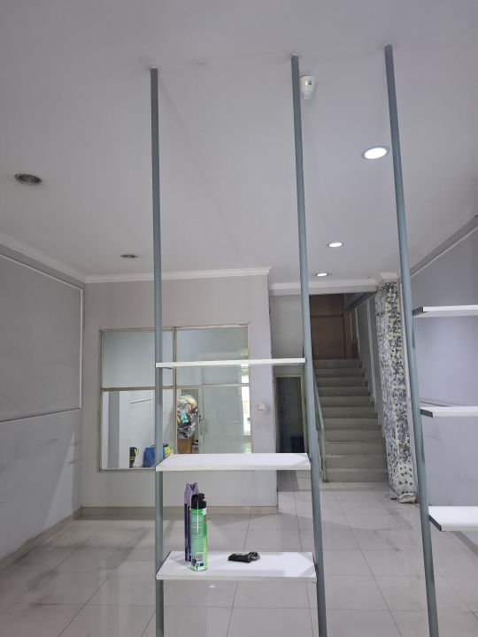 Ruko 3 1/2 lantai, ukuran 5 x 30, dapur kering, dapur basah, SHM, PLN 6600, PAM, hadap Selatan, ada tempat penampungan air / tandon yang besar 8m3, kosong, bagus, terawat, siap pakai, ada 2 penampungan air / tandon di lantai atas, lantai dasar ruko sudah dinaikkan 2 meter dari jalan raya, jadi tidak mungkin banjir, lantai satu bekas kantor, lokasi sebelah tol, SEBERANG EMPORIUM. (yl)