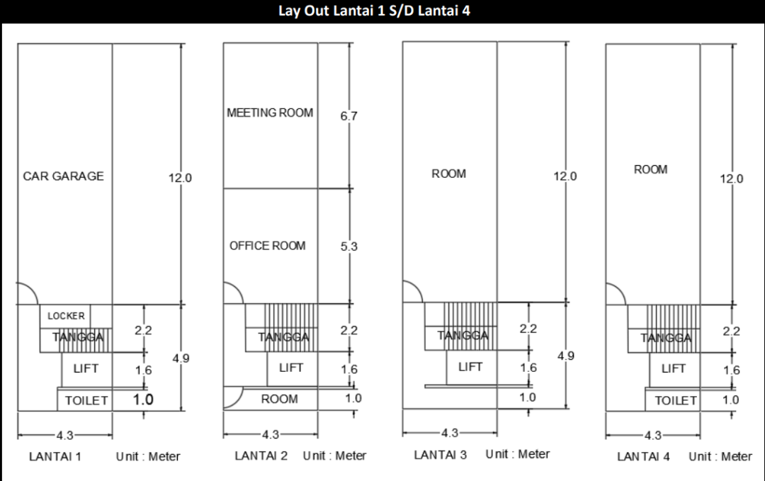 -1 unit Lift Barang, lantai 1-4