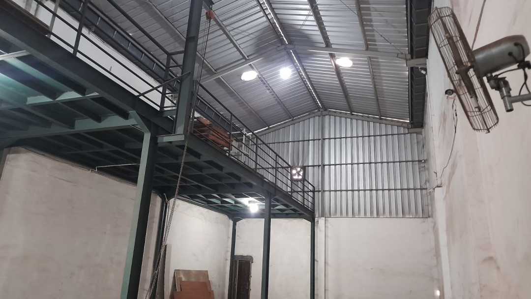 Luas asal gudang = 243 m2 (9 M x 27 m) setengah lebar nya (4,5 M )Telah ditambahin Mezanine konstruksi besi bisa Untuk barang juga Tempat kerja/monitoring kegudang dibawahnya.